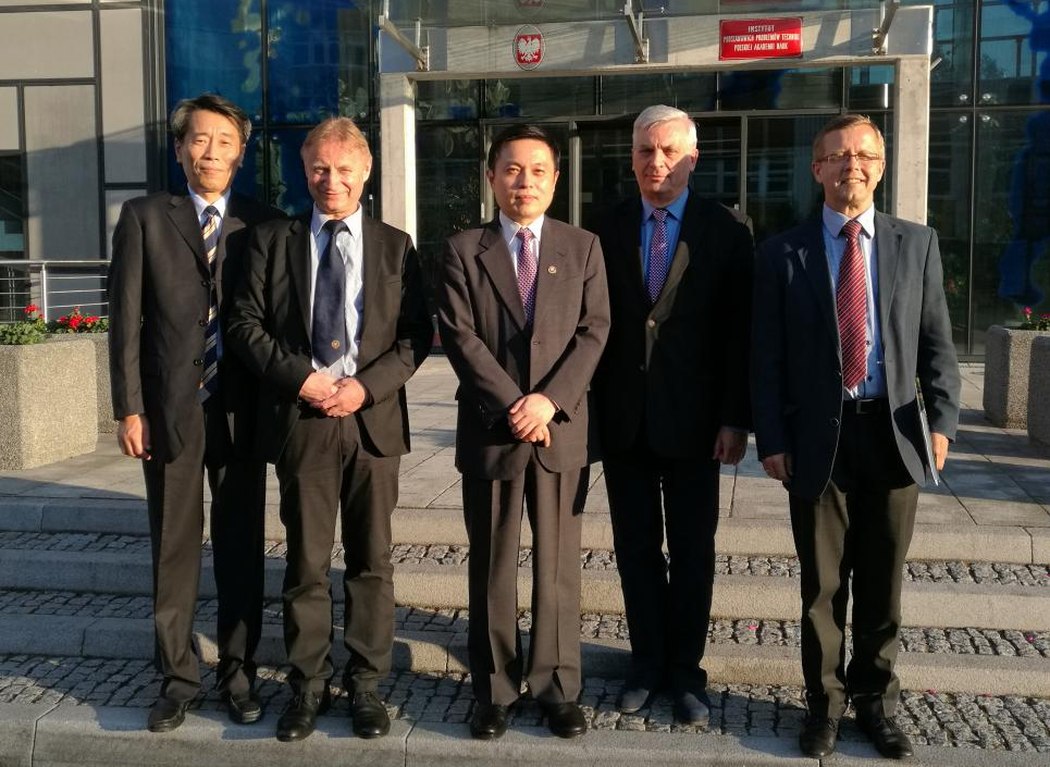 胡海巖校長訪問波蘭科學院基礎(chǔ)技術(shù)研究所,右二為研究所所長Tadeusz Burczynski教授