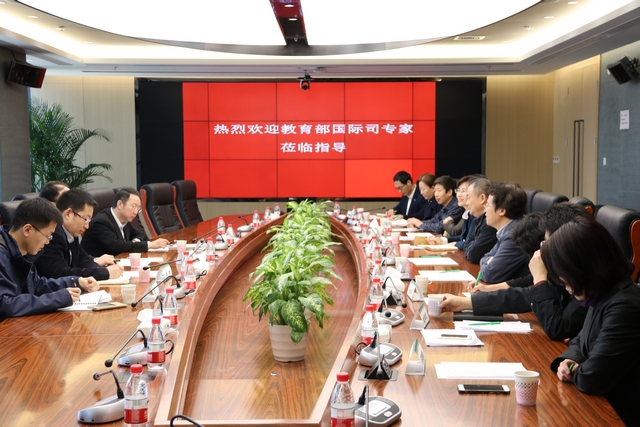 陪同調研的有教育部國際司留學工作處楊洲、高上,國家留學基金委美大事務部主任董志學。學校人事處、研究生院、教務處、招生就業(yè)工作處、國際交流合作處相關負責人及學院教師代表參加了座談會。