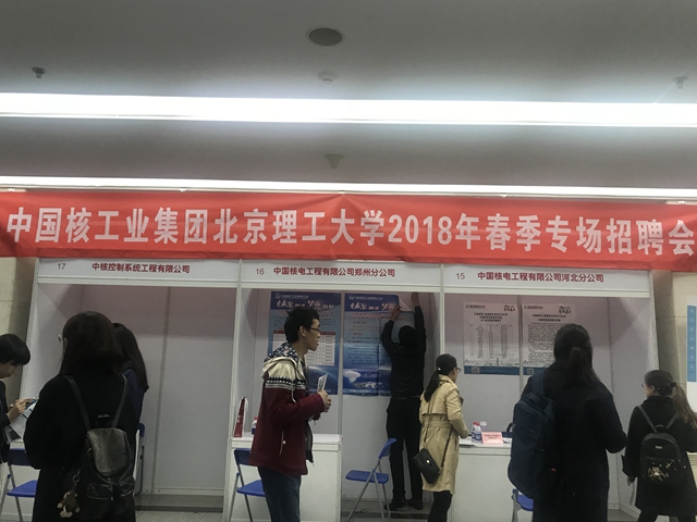 4月3日下午,北理工在體育館南廳舉辦了中國核工業(yè)集團春季專場招聘會。中國核電工程有限公司、中國原子能科學研究院、中國原子能工業(yè)有限公司、中國核科技信息和經(jīng)濟研究院等35家單位組團參加了本次招聘會。