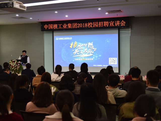 招聘會開始前,中國核工業(yè)集團在唯實報告廳舉行了招聘宣講會,介紹了集團及下屬單位的基本情況及相關招聘需求。中國核工業(yè)集團為我校2018屆畢業(yè)生提供需求崗位近2000個,涉及機械工程、光學工程、電氣工程及自動化、計算機科學與技術、軟件工程、會計學、工商管理、法學、外語等專業(yè)。