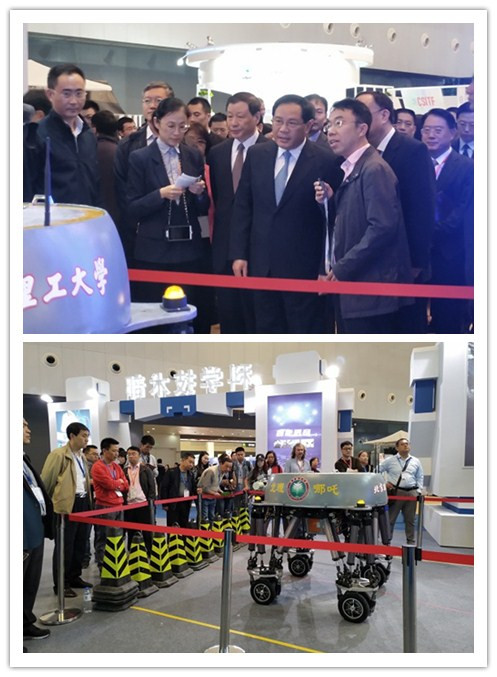 北京理工大學(xué)組織電動(dòng)并聯(lián)式輪足機(jī)器人——“北理哪吒”參展。19日上午,李強(qiáng)、應(yīng)勇、李萌等領(lǐng)導(dǎo)來(lái)到北理工展位前考察,聽(tīng)取了學(xué)校自動(dòng)化學(xué)院副教授汪首坤對(duì)“北理哪吒”的介紹,李強(qiáng)仔細(xì)詢問(wèn)了“北理哪吒”的技術(shù)參數(shù)和應(yīng)用情況,并對(duì)“北理哪吒”的技術(shù)優(yōu)勢(shì)和未來(lái)的應(yīng)用前景給予充分肯定。