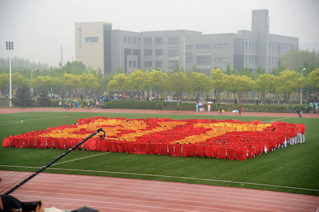 來自19個(gè)學(xué)院的800名學(xué)生帶來的大型團(tuán)體操表演,整齊劃一,意氣風(fēng)發(fā),表演以旗幟為創(chuàng)作元素,紅旗滾滾,氣勢(shì)磅礴,同學(xué)們以精彩的表演點(diǎn)燃全場(chǎng)熱情。結(jié)束之際,學(xué)生們揮動(dòng)手中的旗幟,依次擺出“BIT 強(qiáng)國(guó)夢(mèng) 2018 ”字樣,表達(dá)出北理工莘莘學(xué)子對(duì)國(guó)家、學(xué)校的熱愛與希望,為實(shí)現(xiàn)民族夢(mèng)、強(qiáng)國(guó)夢(mèng)、中國(guó)夢(mèng)而奮斗的信心與決心!