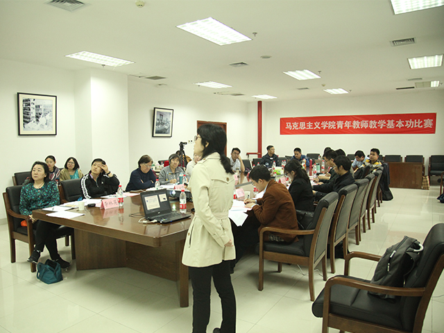 為選拔優(yōu)秀青年教師,為后續(xù)北京市青年教師教學(xué)基本功比賽做準(zhǔn)備,促進(jìn)青年教師教學(xué)能力和水平的提升,提高人才培養(yǎng)質(zhì)量水平,4月21日,馬克思主義學(xué)院2018年度青年教師教學(xué)基本功比賽在徐特立圖書(shū)館626會(huì)議室成功舉辦。本次比賽由馬克思主義學(xué)院副院長(zhǎng)郭麗萍主持,中央財(cái)經(jīng)大學(xué)院長(zhǎng)助理、副教授謝玉進(jìn)、北京科技大學(xué)副教授穆阿妮、學(xué)校督導(dǎo)組專家宋桂芝和楊亞非、馬克思主義學(xué)院教學(xué)指導(dǎo)委員會(huì)成員參加會(huì)議,江大偉等12位青年老師參賽。