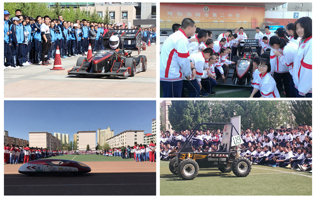 5月2日至5日,在五四青年節(jié)到來之際,北京理工大學(xué)機(jī)械與車輛學(xué)院青年大學(xué)生科技創(chuàng)新作品成功走進(jìn)內(nèi)蒙古自治區(qū)6所重點(diǎn)高中:呼和浩特市第二中學(xué)、內(nèi)蒙古師范大學(xué)附屬中學(xué)、呼和浩特市第一中學(xué)、北重三中、包頭市第九中學(xué)、包鋼一中,為青年高中生們帶來了大學(xué)生科技創(chuàng)新的盛宴,使得6所學(xué)校的萬余名高中生近距離感受了大學(xué)生的創(chuàng)造力和想象力,親身體會了科學(xué)的奧秘。學(xué)院黨委書記左正興、常務(wù)副院長胡紀(jì)濱、副書記副院長范文輝,北理領(lǐng)航人王文中、左哲、陳亞琴、梁鶴、管繼富、李雪原以及學(xué)院招生宣傳工作組老師、各賽車隊(duì)青年大學(xué)生代表等共計18人,分別在對應(yīng)的高中舉行了覆蓋三個年級的專題學(xué)術(shù)講座以及招生宣傳咨詢會,使得高中生們對北京理工大學(xué)在人才培養(yǎng)、科學(xué)研究、國際交流、社會服務(wù)等各個方面有了更深的認(rèn)識和了解,對于吸引更多的優(yōu)秀生源報考我校起到了積極促進(jìn)的作用。