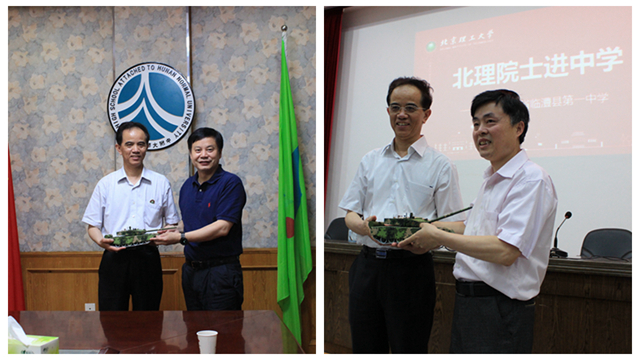 陳偉、謝永紅代表全校師生歡迎孫逢春院士一行的到來,在致辭中充分肯定了北京理工大學(xué)的光輝歷程、辦學(xué)特色和卓越成就,表達(dá)了持續(xù)加深雙方友誼與開展更高層次合作的殷切希望,為國家創(chuàng)新發(fā)展輸送高質(zhì)量的人才。孫逢春院士以國家新時代發(fā)展的需要、“雙一流建設(shè)”的需要、“北理工品格”領(lǐng)導(dǎo)領(lǐng)軍人才培養(yǎng)的需要出發(fā)闡述了人才培養(yǎng)的重要性,感謝兩校多年來持續(xù)為北京理工大學(xué)輸送優(yōu)秀人才,并贈送了北理特色紀(jì)念品。