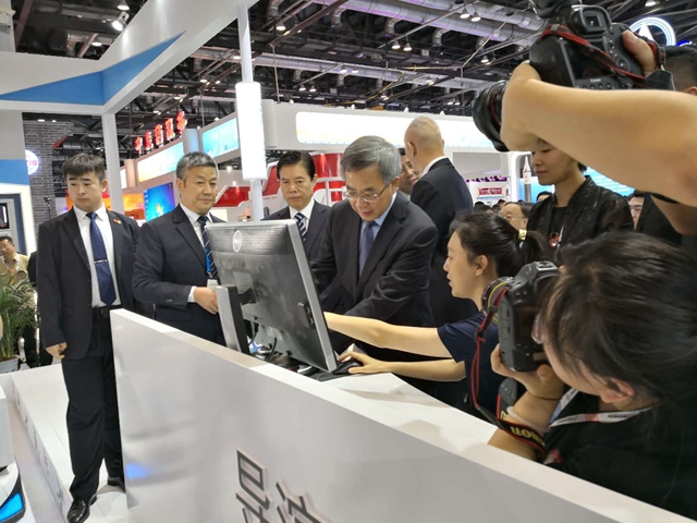 2018年5月28日上午,第五屆中國(北京)國際服務(wù)貿(mào)易交易會(京交會)在京開幕,中共中央政治局委員、國務(wù)院副總理胡春華考察了交易會,中共中央政治局委員、北京市委書記蔡奇和商務(wù)部部長鐘山陪同考察。