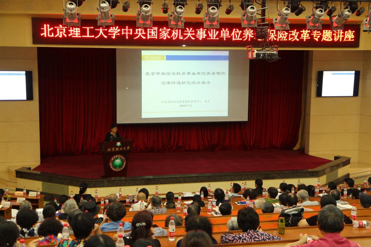 中央國家機關(guān)養(yǎng)老保險管理中心于2018年6月全面啟動我校在職教職工保費征繳和退休教職工待遇發(fā)放工作,為了讓廣大教職工更清晰地了解中央國家機關(guān)事業(yè)單位養(yǎng)老保險改革相關(guān)政策,保證改革工作平穩(wěn)過渡,我校邀請中央國家機關(guān)養(yǎng)老保險管理中心待遇核定處處長朱文于6月4日下午兩點在中心教學樓報告廳開展北京理工大學中央國家機關(guān)事業(yè)單位養(yǎng)老保險改革專題講座。