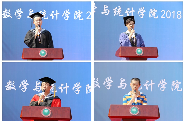 張世強,吳昊分別代表畢業(yè)本科生、研究生發(fā)言。他們代表全體畢業(yè)生感謝學(xué)校、學(xué)院的培養(yǎng),感謝教師、父母的關(guān)心,感謝同學(xué)、朋友的鼓勵。他們還表達了將用知識和行動報效祖國的決心,也表達了對學(xué)校、學(xué)院、師生的美好祝愿。蔣立寧代表全體教師發(fā)言。他祝福同學(xué)們擁有清澈的心,永遠上進,不以大學(xué)的結(jié)束作為求知的終點,他祝福同學(xué)們擁有平和的心,寧靜致遠。本科生劉新桐的父親劉杰先生作為家長代表發(fā)言,他感謝學(xué)院四年來對孩子們的教育與照顧,并向全體畢業(yè)生寄予了未來人生道路上“做好人,做好事”的期盼。