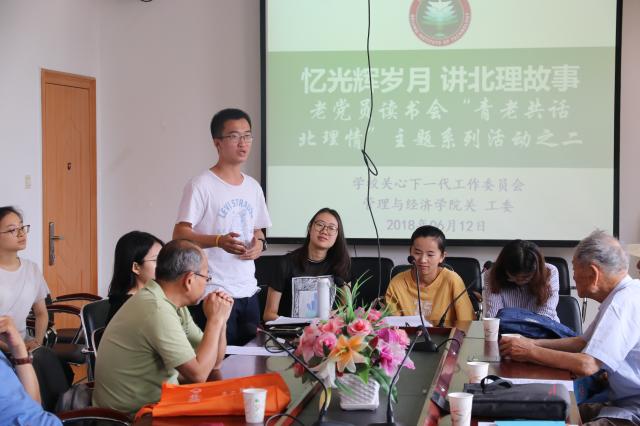 編輯:仇業(yè)涵 審核:彭明雪、李振江 閱讀次數(shù):為進一步引導(dǎo)青年學(xué)子樹立和踐行社會主義核心價值觀,幫助學(xué)生樹立正確的世界觀、人生觀、價值觀,支持學(xué)生成長成才,作為校關(guān)工委2018年精品活動和品牌項目,6月12日,管理與經(jīng)濟學(xué)院關(guān)工委聯(lián)合校關(guān)工委老同志陽光報告團,青老近40人在遠志樓210活動室召開了“憶光輝歲月、講北理故事”主題系列活動?;顒泳o密圍繞北理工的校史、北理工的發(fā)展、北理工的成就等展開對話與互動。座談會從上午9點持續(xù)到中午11點半?;顒佑稍瓕W(xué)校紀委書記、校關(guān)工委老同志陽光報告團團長張敬袖主持。