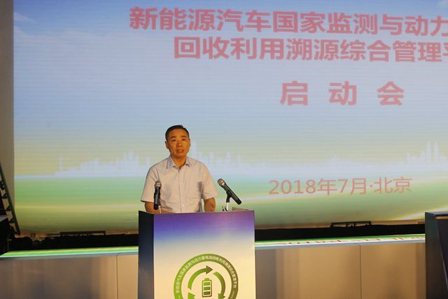 2018年7月31日,新能源汽車國家監(jiān)測(cè)與動(dòng)力蓄電池回收利用溯源綜合管理平臺(tái)(以下簡稱“國家溯源管理平臺(tái)”)啟動(dòng)儀式于北京理工大學(xué)電動(dòng)車輛國家工程實(shí)驗(yàn)室成功舉行。工業(yè)和信息化部黨組成員、副部長辛國斌出席會(huì)議并作重要講話。工業(yè)和信息化部節(jié)能與綜合利用司司長高云虎主持會(huì)議。科技部、公安部、生態(tài)環(huán)境部、交通運(yùn)輸部、商務(wù)部、市場(chǎng)監(jiān)管總局、能源局、工業(yè)和信息化部節(jié)能與綜合利用司、辦公廳、裝備司等領(lǐng)導(dǎo),試點(diǎn)地區(qū)工業(yè)和信息化主管部門負(fù)責(zé)人,工業(yè)和信息化部裝備工業(yè)發(fā)展中心、中國汽車技術(shù)研究中心有限公司等單位負(fù)責(zé)人,中國汽車工業(yè)協(xié)會(huì)、中國電池工業(yè)協(xié)會(huì)和部分汽車制造、電池生產(chǎn)及綜合利用等骨干企業(yè)代表參加。北京理工大學(xué)黨委書記趙長祿、副校長龍騰、電動(dòng)車輛國家工程實(shí)驗(yàn)室主任(新能源汽車國家大數(shù)據(jù)聯(lián)盟執(zhí)行理事長)中國工程院院士孫逢春,以及學(xué)校相關(guān)部門負(fù)責(zé)人、電動(dòng)車輛國家工程實(shí)驗(yàn)室相關(guān)人員參加了此次啟動(dòng)儀式。