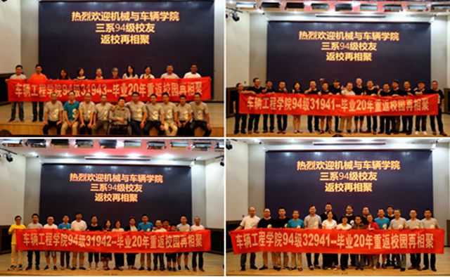 8月18日,機(jī)械與車輛學(xué)院31、32專業(yè)1994級(jí)本科生80余名校友在闊別學(xué)校二十年之后,重返母校,共慶畢業(yè)二十周年,追憶同窗舊事,暢談人生感悟,展望美好未來(lái)。學(xué)院黨委書(shū)記左正興等學(xué)院領(lǐng)導(dǎo)以及原任課教師張振華、林程、張衛(wèi)正、黃華、劇引芳等出席此次返校慶祝大會(huì)。
