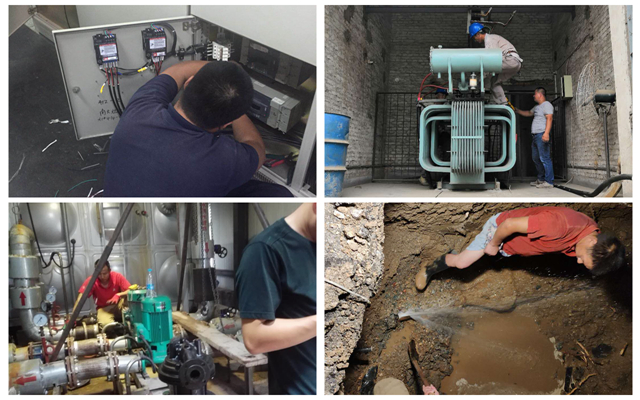 設(shè)備管理部每天正常對(duì)設(shè)備運(yùn)行正常巡視,及時(shí)、妥善處理突發(fā)設(shè)備故障31起(電梯故障9次、空調(diào)故障18次、水泵故障4次),保障了電梯、空調(diào)等設(shè)備的安全運(yùn)行。此外,還對(duì)中心所轄的地下排污設(shè)施進(jìn)行全面排查,更換了教學(xué)樓、學(xué)生公寓地下排污泵4臺(tái);對(duì)校區(qū)主要干道和易積水路段的雨水井、排水溝進(jìn)行全面清掏和徹底維修,確保雨水及時(shí)排泄,路面不積水;對(duì)3號(hào)教、4號(hào)教、中心教學(xué)樓的8條雨水管進(jìn)行了維修、清理、疏通,保障管道排水正常。