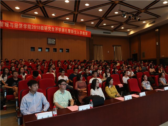 學(xué)院副院長(zhǎng)唐葆君,副院長(zhǎng)關(guān)宏,黨委副書(shū)記、副院長(zhǎng)彭明雪,管理工程系主任王科,組織與人力資源系主任高昂,研究生教學(xué)中心主任王懷豫,副主任賈曉薇,研工委書(shū)記梁昊,博士研究生教學(xué)干事馬如意、碩士研究生教學(xué)干事何為及2018級(jí)全體碩士、博士研究生出席開(kāi)學(xué)典禮。
