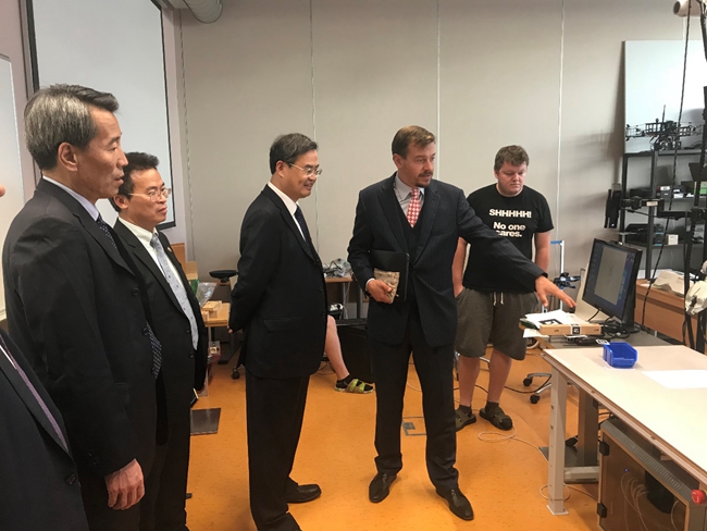 張軍詳細了解了信息工程學院的研究成果,并就學生聯(lián)合培養(yǎng)各環(huán)節(jié)以及聯(lián)合申請研究項目等內(nèi)容與院長Pavel Zem?ík教授等進行討論。北理工代表團一行參觀了部分研究實驗室,并親身體驗教學環(huán)境。