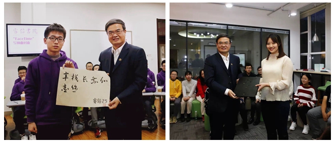 活動中,睿信書院、精工書院和明德書院的學生代表向張軍校長贈送了自己創(chuàng)作的作品。