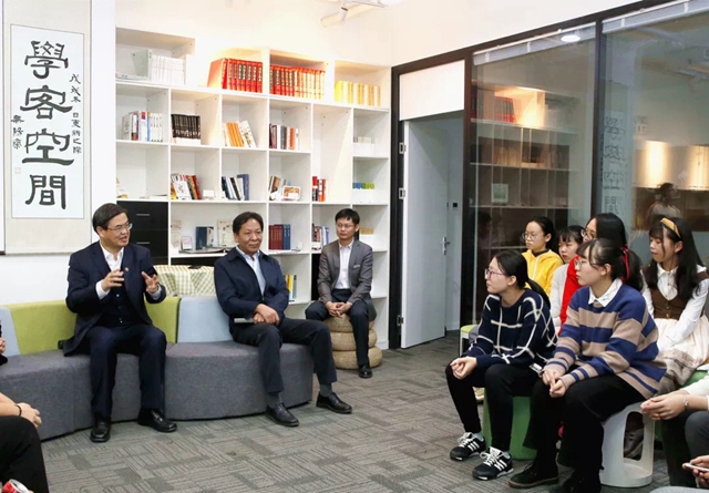 在參與書院學生活動期間,張軍還走訪調(diào)研了各書院的辦公空間,了解書院建設情況,與書院輔導員進行交流溝通。