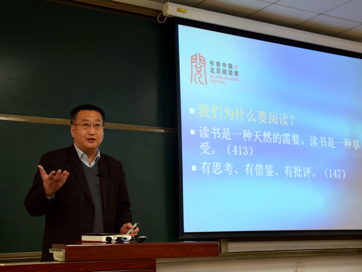 崔岱遠圍繞學習與閱讀的區(qū)別、我們?yōu)槭裁匆喿x、如何選擇一本書、閱與讀的區(qū)別和形態(tài)、如何對待電子閱讀、讀書會的好處、閱讀與文化自信的關(guān)系七個方面展開講解,以《習近平的七年知青歲月》為例,向同學們講授閱讀技巧,帶領(lǐng)同學們走進青年習近平的知青歲月。當談及“我們?yōu)槭裁匆喿x”時,崔岱遠強調(diào),閱讀是生活的一部分,它可以拓寬視野,增加人生閱歷,讓我們“有思考,有借鑒,有批評”。他還強調(diào),人的一生并不是一帆風順的,而是像波一樣起起伏伏。在人生的波峰時,閱讀可以平和心態(tài);在人生的波谷時,閱讀可以帶來希望。