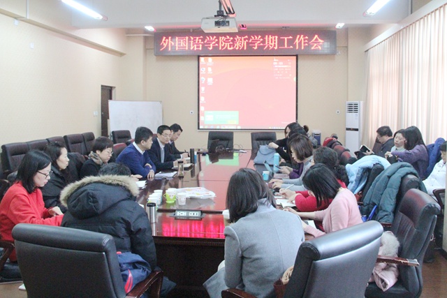 2月22日下午,外國語學院還召開了全體教師大會。李京廉總結(jié)了學院2018年的工作并介紹了2019年的工作重點,副院長姜愛紅、張萊湘分別對新學期的學科、科研及教學工作做了布置,楊暉在總結(jié)時,要求學院教師同心同德,凝心聚力,把握機遇,迎接挑戰(zhàn),為創(chuàng)建與“雙一流”大學相匹配的外語學院而繼續(xù)努力。本次工作會議為新學期的學院工作指明了方向,鼓舞了士氣,振奮了精神,為后續(xù)工作順利的開展奠定了良好基礎(chǔ)。