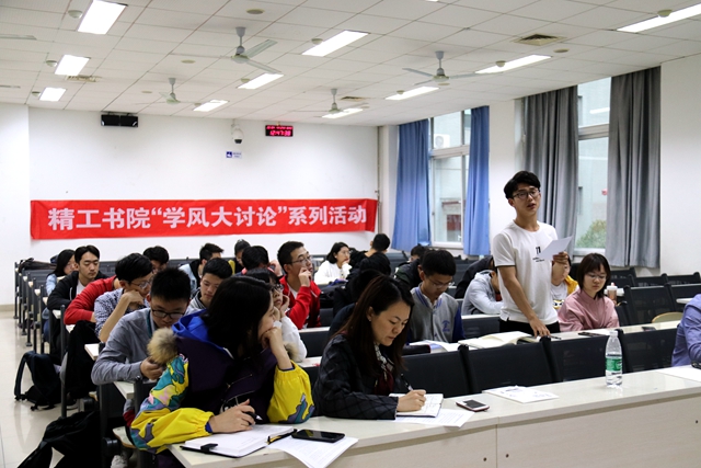 田昊進(jìn)行小結(jié),總結(jié)了一些行之有效的學(xué)風(fēng)建設(shè)措施,希望各班級在日常學(xué)習(xí)中落實相關(guān)措施,做好總結(jié)宣傳工作。2018級輔導(dǎo)員靳芬就學(xué)風(fēng)督查情況進(jìn)行通報,并宣讀了《精工書院學(xué)風(fēng)提升行動計劃實施方案(草案)》,強調(diào)要提升同學(xué)們學(xué)習(xí)的主觀能動性,加強外部監(jiān)督和輔導(dǎo),異常情況及時向輔導(dǎo)員反饋。學(xué)生工作辦公室主任、團(tuán)委書記于滿解讀了《關(guān)于2019年加強班集體建設(shè)的通知》,鼓勵各班級結(jié)合學(xué)風(fēng)建設(shè)做好班集體的建設(shè)工作,積極參與優(yōu)秀班集體的申報評選。會議最后,副院長方蕾進(jìn)行總結(jié),再次強調(diào)了學(xué)風(fēng)建設(shè)工作的重要意義,希望各個班級把工作細(xì)化并落到實處,將班集體建設(shè)與學(xué)風(fēng)建設(shè)結(jié)合起來,切實做好班風(fēng)學(xué)風(fēng)建設(shè)的相關(guān)工作。