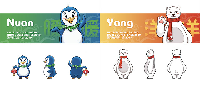 作品的創(chuàng)意靈感來自南極的企鵝暖暖和來自北極的北極熊洋洋的組合,寓意在全球氣候日益嚴峻的當下,來自地球兩級的具有典型代表性的生物攜起手來,共同助力被動房大會這一盛事,呼吁世界各國人民建立并推廣超低能耗建筑,在全球范圍內打造健康、宜人、舒適的人類生存環(huán)境。形象創(chuàng)作體現(xiàn)了國際視野,企鵝和北極熊作為極具國際通識力的生物,深受全球人民的喜愛,也很好的吻合了此次大會主題-遍及全球的理念,寓意著希望被動房大會能夠在全球范圍內產(chǎn)生影響力、被動房的技術能夠在世界各國能得到推廣、被動房建筑能夠被廣泛接受并惠及全球,切實幫助人們保護地球環(huán)境,實現(xiàn)可持續(xù)發(fā)展。在創(chuàng)作過程中,團隊不僅創(chuàng)作了暖暖和洋洋豐富的表情、體態(tài)、互動關系,也將中國元素中吉祥元素糅合在吉祥物的形象特征中,呼應了其在中國舉辦的地域性特征,使其更釋放出中國活力。北理工設計團隊在后續(xù)任務中將繼續(xù)創(chuàng)造一系列視覺形象拓展與工業(yè)設計應用,為大會的成功舉辦提供設計力支撐。隨著被動房盛會的臨近,我們會陸續(xù)的在機場、地鐵等公共場所看到這些形象。