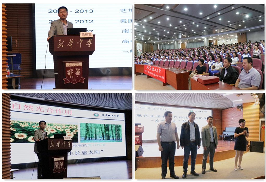 5月13日下午,“北理講堂”活動(dòng)走進(jìn)北京理工大學(xué)優(yōu)秀生源基地——新華中學(xué),化學(xué)學(xué)院陳磅寬教授面向新華中學(xué)化學(xué)部全體學(xué)生作了題為《現(xiàn)代生活和當(dāng)代科技中的化學(xué)》的學(xué)術(shù)講座。新華中學(xué)“北理領(lǐng)航人”李斌副教授、天津招生組王曉靜老師陪同參加,新華中學(xué)高二級(jí)部主任韓冰老師主持講座。陳磅寬教授的報(bào)告通俗易懂,向新華學(xué)子重點(diǎn)闡述了關(guān)于“發(fā)光”現(xiàn)象這一熱點(diǎn)領(lǐng)域背后蘊(yùn)含的基本科學(xué)問題,從原理到應(yīng)用,從日常生產(chǎn)生活(如太陽能的利用)到未來科技前沿(如折疊顯示屏、損傷修復(fù))作了深入淺出的講解。該講座全場互動(dòng)頻繁,學(xué)術(shù)反響強(qiáng)烈,極大地調(diào)動(dòng)了學(xué)生的研究熱情,好學(xué)求知的新華學(xué)子在講座現(xiàn)場踴躍發(fā)言提問,陳磅寬教授傾力解疑釋惑,現(xiàn)場互動(dòng)氣氛熱烈。