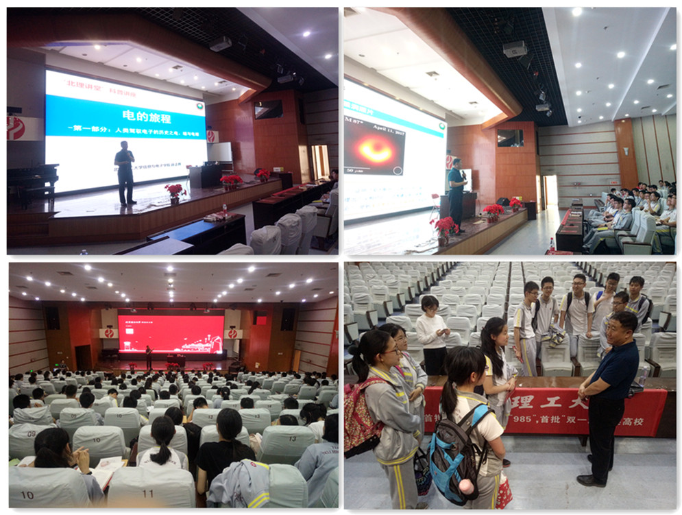 5月14日下午,信息與電子學(xué)院黨委書記薛正輝教授受天津一中邀請(qǐng)開展“北理講堂”活動(dòng),天津一中“領(lǐng)航人”郭俊芳、天津招生組王曉靜老師隨行,天津一中教務(wù)處副主任薛洪國老師主持講座。薛正輝面向天津一中高一年級(jí)學(xué)生作了題為《“電”的旅程”——人類駕馭電子的歷史之電、磁與電磁》的學(xué)科講座。薛正輝教授帶學(xué)生走入“電”的世界,沿著“電”的旅程,深入淺出的介紹了電磁領(lǐng)域的科學(xué)發(fā)現(xiàn)、技術(shù)進(jìn)步和應(yīng)用拓展的歷史進(jìn)程,著重講解十九世紀(jì)電磁領(lǐng)域的革命性突破,以及這種突破對(duì)現(xiàn)代科技及人類生活的影響。該場講座中科學(xué)家們探索和追求真理的精神激發(fā)了學(xué)生的興趣,學(xué)術(shù)反響強(qiáng)烈,講座在陣陣掌聲中圓滿結(jié)束。