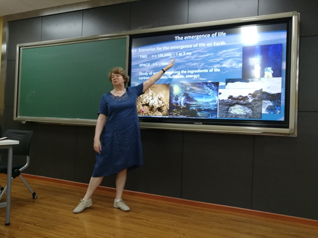 法國(guó)著名天體生物學(xué)家Frances Westall教授為大家講授了空間生物學(xué)的有關(guān)知識(shí)。她從地質(zhì)學(xué)角度看生命的起源,討論了地球的起源和早期地球在哈迪安時(shí)代作為生命起源的背景的地質(zhì)背景,介紹了地球和火星上早期生命的化石痕跡。