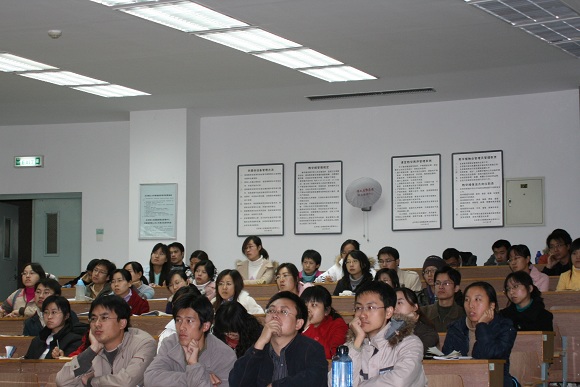 最后姜老師用“選擇、前進(jìn)、成功”作為結(jié)束語并表達(dá)了對08屆畢業(yè)生的美好祝福,臺下的研究生受益頗多、反響熱烈!