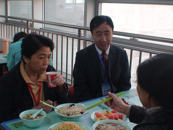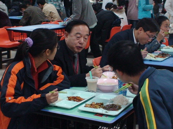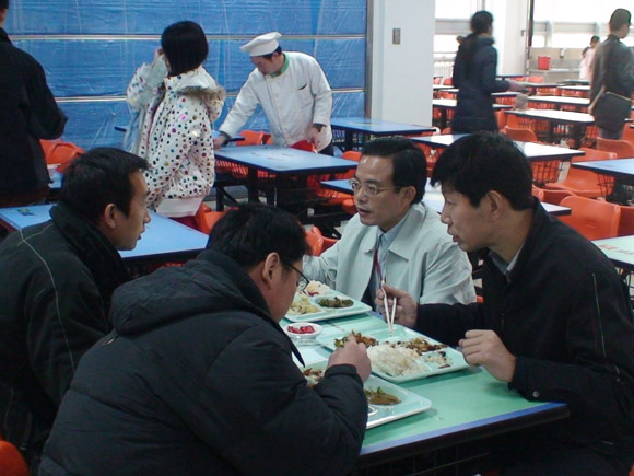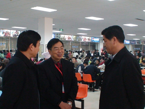 2007年11月16日中午,本科教學評估專家組部分專家在學校有關部門領導的陪同下,來到學校新食堂與學生一起共進午餐。