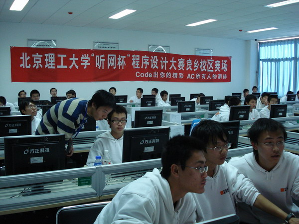 2007年11月17日星期六上午,由北京聞言科技有限公司贊助的北京理工大學(xué)聽網(wǎng)杯程序設(shè)計大賽開幕了。本次大賽分為中關(guān)村校區(qū)賽場和良鄉(xiāng)校區(qū)賽場,良鄉(xiāng)校區(qū)是今年夏天剛剛啟用,雖然大一的新生們接觸編程的時間還很短,但這并不影響同學(xué)們參與這項比賽的熱情。