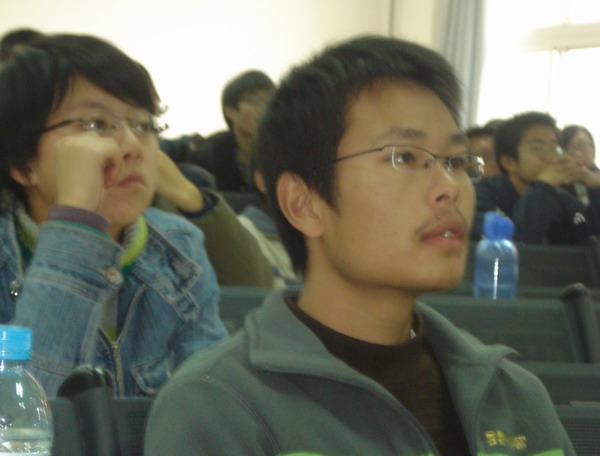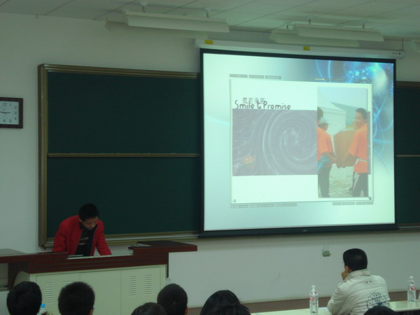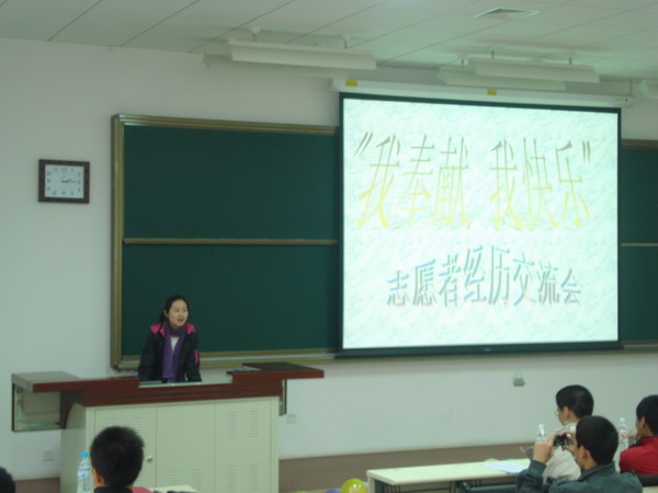 12月1日,在良鄉(xiāng)校區(qū)理科教學(xué)樓202教室,軟件學(xué)院分團(tuán)委主辦了主題為“我奉獻(xiàn) 我快樂”的志愿者經(jīng)歷交流會(huì)。到場(chǎng)的嘉賓有6名來自各個(gè)領(lǐng)域的志愿者。他們分別是2007年上海特奧會(huì)志愿者黃霆;2007年“好運(yùn)北京”國際盲人們求邀請(qǐng)賽志愿者郝鵬飛、史闖嶺;2007年中國網(wǎng)球公開賽十佳志愿者王圣;2007年“好運(yùn)北京”國際棒球邀請(qǐng)賽志愿者周光宇;造血干細(xì)胞捐獻(xiàn)者之家的志愿者俞錦聲。