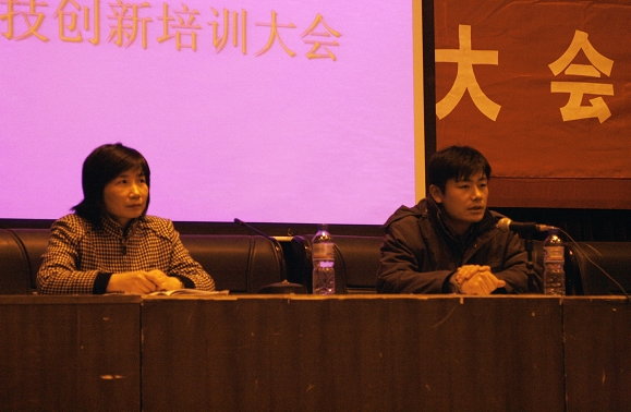校團委副書記戴方震結合我校參加的各種科技創(chuàng)新大賽,尤其是“挑戰(zhàn)杯”的實際情況,以及他的在創(chuàng)新實踐方面的親身經(jīng)歷為同學們進行了生動形象、深入淺出的精彩講解。他通過展示學生科技創(chuàng)新獲獎作品,說明了培養(yǎng)良好的興趣、積極思考和探索的重要性。建議大家要捕捉頭腦中閃現(xiàn)的每一個火花,把握機會、充分利用教學資源、多向?qū)W長、老師請教,提高科技創(chuàng)新能力。另外還對同學們在科技創(chuàng)新中可能遇到的問題進行了悉心的指導。
