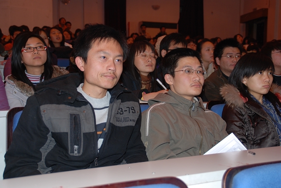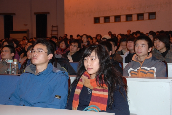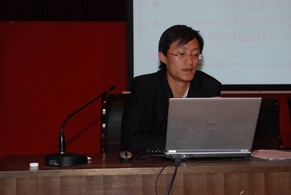 賈效明老師以介紹近日發(fā)布在校園網(wǎng)主頁(yè)上的一則新聞“設(shè)立領(lǐng)航獎(jiǎng)學(xué)金 確立青春新坐標(biāo)”開始,向同學(xué)們展示了2003級(jí)優(yōu)秀本科生代表和優(yōu)秀班級(jí)代表,鼓勵(lì)同學(xué)們此他們?yōu)榘駱訌?qiáng)化自我素質(zhì),共創(chuàng)團(tuán)隊(duì)榮譽(yù)。隨后,賈老師通過(guò)豐富的事例和具體的數(shù)據(jù)說(shuō)明年級(jí)的現(xiàn)狀和問(wèn)題,希望同學(xué)們珍惜求學(xué)機(jī)會(huì),付出更多努力,為自己和所在團(tuán)隊(duì)贏得榮譽(yù)。