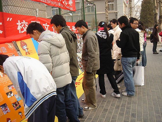 為展現(xiàn)新時(shí)代大學(xué)生的風(fēng)采,展現(xiàn)大學(xué)生們對2008北京奧運(yùn)的期待與向往的熱情。2007年12月9日,管理與經(jīng)濟(jì)學(xué)院奧運(yùn)系列圖片展——主題為:“用微笑迎接奧運(yùn),用熱情征服世界”的奧運(yùn)微笑墻亮相新食堂對面。