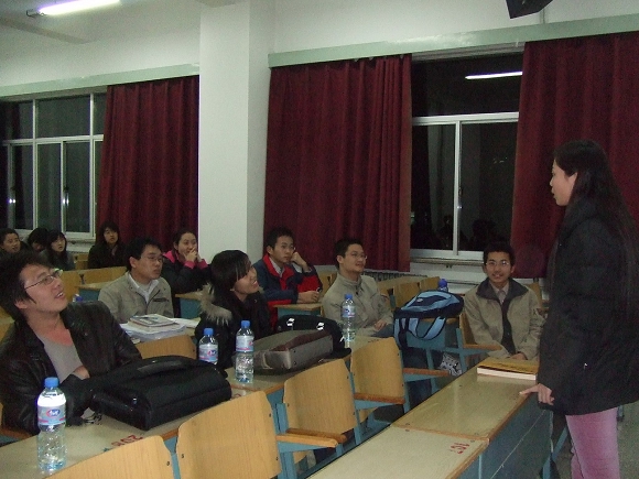 趙磊學(xué)長(zhǎng)曾在全國(guó)挑戰(zhàn)杯大賽上獲獎(jiǎng),并赴美國(guó)幾所著名大學(xué)交流訪(fǎng)問(wèn)。他生動(dòng)有趣地介紹了赴美的經(jīng)歷,告訴同學(xué)們到美國(guó)留學(xué)的注意事項(xiàng),讓同學(xué)們受益匪淺.