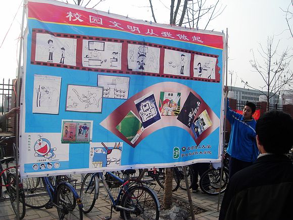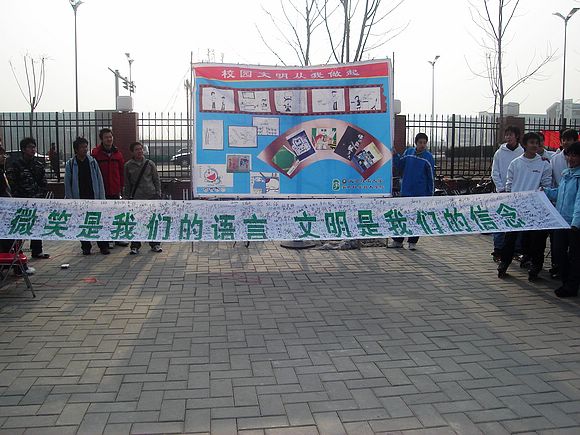 為配合校園文明的倡議,宇航學(xué)院同學(xué)還制作了宣傳板和海報(bào).