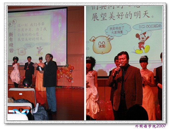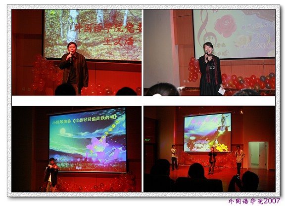 北京理工大學(xué)計(jì)算機(jī)科學(xué)技術(shù)學(xué)院黨委書記王樹武,外國(guó)語(yǔ)學(xué)院院長(zhǎng)吳樹敬,外國(guó)語(yǔ)學(xué)院黨委書記王文清,計(jì)算機(jī)科學(xué)技術(shù)學(xué)院副書記、副院長(zhǎng)陳旵明,計(jì)算機(jī)科學(xué)技術(shù)學(xué)院院長(zhǎng)助理李冬妮,外國(guó)語(yǔ)學(xué)院副院長(zhǎng)、英語(yǔ)系主任李京廉,外國(guó)語(yǔ)學(xué)院副院長(zhǎng)、日語(yǔ)系主任譚利群,外國(guó)語(yǔ)學(xué)院副書記、副院長(zhǎng)吳文君,外國(guó)語(yǔ)學(xué)院大學(xué)英語(yǔ)教研室主任汪宏,外國(guó)語(yǔ)學(xué)院日語(yǔ)系副主任郭玉杰及計(jì)算機(jī)科學(xué)技術(shù)學(xué)院、外國(guó)語(yǔ)學(xué)院分團(tuán)委、研工委老師和2007級(jí)班主任出席了此次晚會(huì)。