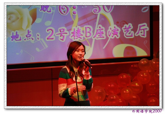 兩個(gè)學(xué)院的老師們?yōu)橥瑢W(xué)們帶來了精彩的節(jié)目。外國(guó)語(yǔ)學(xué)院黨委書記王文清老師的一曲《小白楊》,用高亢、雄渾的聲音堅(jiān)實(shí)了我們北理人的精神;計(jì)算機(jī)學(xué)院院長(zhǎng)助理李冬妮老師一曲《催眠》,讓全場(chǎng)爆發(fā)出陣陣熱烈的掌聲。來自外國(guó)語(yǔ)學(xué)院的青年教師栗欣,也用小提琴演繹了一段精美的愛情故事;計(jì)算機(jī)學(xué)院2007級(jí)輔導(dǎo)員高強(qiáng)老師也通過歌曲的方式向所有的學(xué)生表達(dá)了新年祝福。中關(guān)村校區(qū)的學(xué)長(zhǎng)們也給2007級(jí)新生帶來了精彩的節(jié)目。
