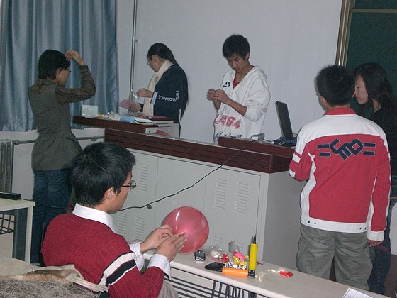 聯(lián)歡會前,同學(xué)們積極布置著會場。
