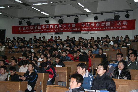 此次活動中,計(jì)算機(jī)科學(xué)技術(shù)學(xué)院分黨委書記王樹武,院長付夢印,副書記、副院長陳旵明,常務(wù)副院長賈云得,教學(xué)副院長牛振東出席參加了此次活動。到場的學(xué)生有計(jì)算機(jī)科學(xué)技術(shù)學(xué)院中關(guān)村校區(qū)的全體本科生。同時(shí),會議情況在良鄉(xiāng)校區(qū)分會場為計(jì)算機(jī)學(xué)院2007級新生進(jìn)行了同程互動直播。