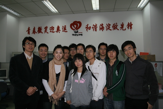 在海淀團(tuán)區(qū)委的辦公室內(nèi)與負(fù)責(zé)奧運(yùn)志愿者事宜的工作人員合影