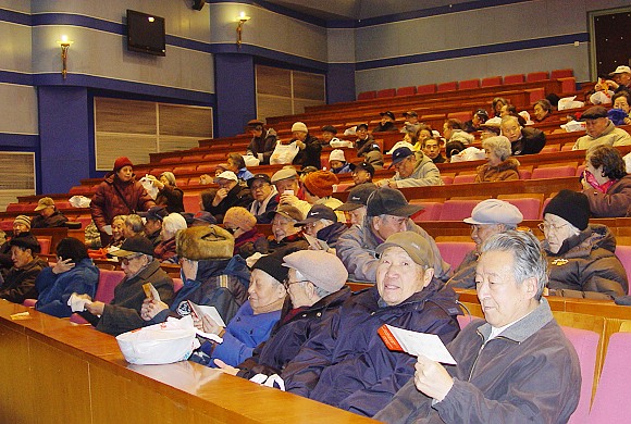 我校黨委副書記侯光明在放映前向老同志們致以新春的問候和真摯的祝福。離退休干部黨委、老干部處的領(lǐng)導(dǎo)楊惠萍、劉川等向離退休的老同志獻上真心的祝愿。大廳里充滿了節(jié)日的氣氛,老干部處的領(lǐng)導(dǎo)和工作人員們一道為老同志發(fā)紀(jì)念獎。