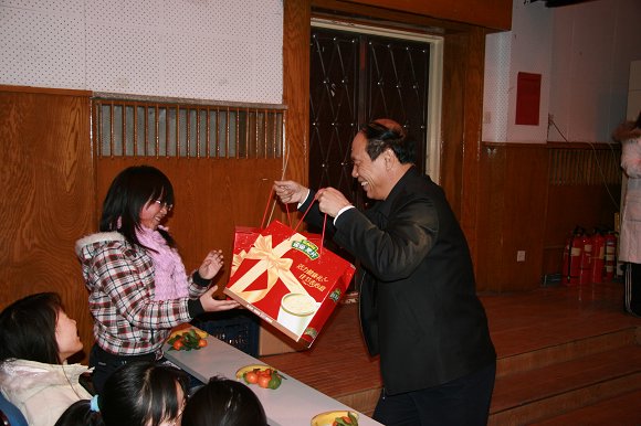 領(lǐng)導(dǎo)們給同學(xué)們發(fā)慰問(wèn)品
