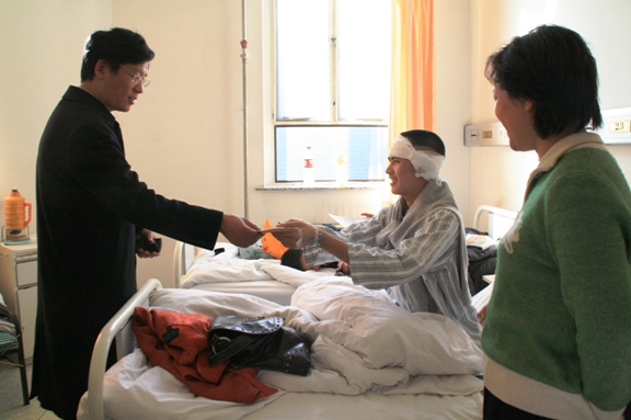 2008年1月31日,在校黨委學(xué)生工作部的協(xié)調(diào)和組織下,黨委副書記、副校長楊賓一行前往北大人民醫(yī)院和中國醫(yī)學(xué)科學(xué)院腫瘤醫(yī)院探望患病住院的我校學(xué)生。