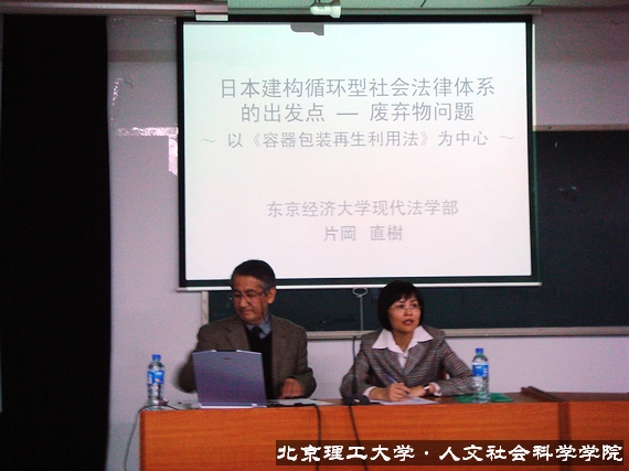 片岡直樹教授首先以震驚世界的日本“四大公害事件”引起了大家對于日益嚴(yán)重的環(huán)境問題的關(guān)注,隨后又從經(jīng)濟分析的角度出發(fā),以《日本容器包裝利用法》為中心,對日本解決廢棄物問題的再生利用法體系做了系統(tǒng)而詳細的介紹。最后,片岡直樹教授對日本再生利用法中成功的經(jīng)驗以及存在的問題做了總結(jié),以期對中國的環(huán)境立法起到借鑒作用。