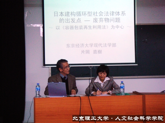 3月5日晚,來自日本的片岡直樹教授在1號樓110教室為大家?guī)砹艘粓鲱}為“日本建構(gòu)循環(huán)型社會法律體系的出發(fā)點:廢棄物問題”的學(xué)術(shù)報告。人文學(xué)院法律系副主任楊成銘教授、羅麗副教授以及出席了報告會。本次報告會也是人文學(xué)院法律系“著名法學(xué)家講壇”系列活動的一部分。楊成銘教授(中)主持 介紹片岡直樹教授(左)情況