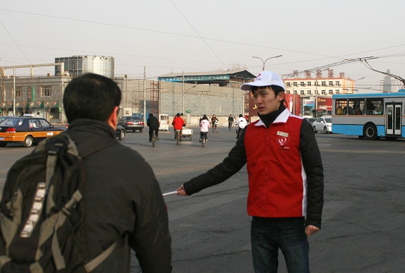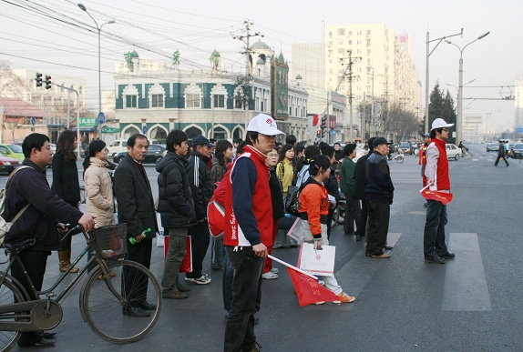 為了保證“兩會”的順利召開,協(xié)助交警維持繁華路段交通秩序。3月5日,十余名信息學院奧運志愿者在院分團委書記程斌、副書記高路的帶領(lǐng)下,來到廣安門內(nèi)大街的虎坊橋、菜市口、牛街、白廣路四個路口對行人和非機動車輛進行指揮疏導。