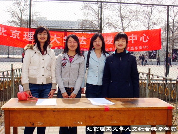 2008年3月15日,北京理工大學(xué)法律援助中心在校園內(nèi)舉辦3.15消費(fèi)者維權(quán)宣傳活動,本次活動也揭開了法律援助中心“2008年法律援助回報社會”系列公益活動的序幕。