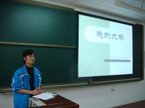 計(jì)算機(jī)、軟件學(xué)院副書記、副院長(zhǎng)陳旵明老師,計(jì)算機(jī)學(xué)院本科2007級(jí)輔導(dǎo)員高強(qiáng)老師參加了本次德育答辯開題報(bào)告會(huì)。此次由12110701班組織的開題會(huì)以“認(rèn)真把握青春、用心規(guī)劃未來”為主題,要求每個(gè)同學(xué)都上臺(tái)進(jìn)行自己的開題陳述,然后由輔導(dǎo)員、班主任、班委組成的評(píng)委小組對(duì)該同學(xué)的答辯現(xiàn)場(chǎng)表現(xiàn)進(jìn)行提問和打分,最后結(jié)合開題報(bào)告分給出本學(xué)年的形勢(shì)政策課成績(jī)。