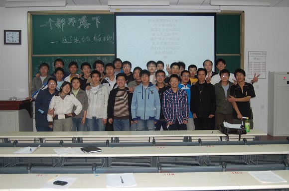 在演講結(jié)束時(shí)大家將自己的名字寫在黑板上,展現(xiàn)出一個(gè)團(tuán)結(jié)的班風(fēng)!接下來全班同學(xué)與沈輔導(dǎo)員、孫老師合影,為本次演講畫上句號!